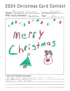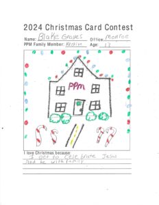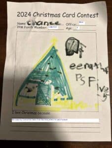 One of our favorite traditions at PPM is sending a special Christmas greeting to each of our clients. Each year our card features art by one of our team members’ children, and we love how our kids share what Christmas looks like through their eyes.