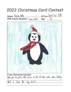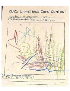 One of our favorite traditions at PPM is sending a special Christmas greeting to each of our clients. Each year our card features art by one of our team members’ children, and we love how our kids share what Christmas looks like through their eyes.
